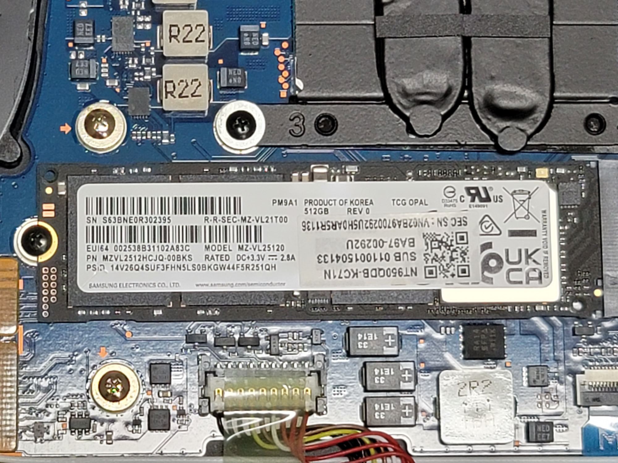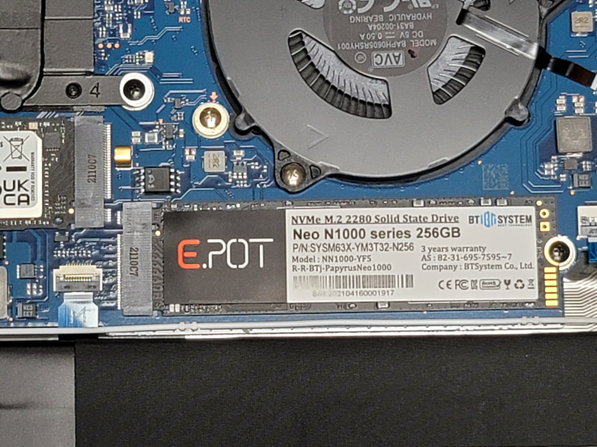 기본 장착되어 있는 SSD가 보인다.