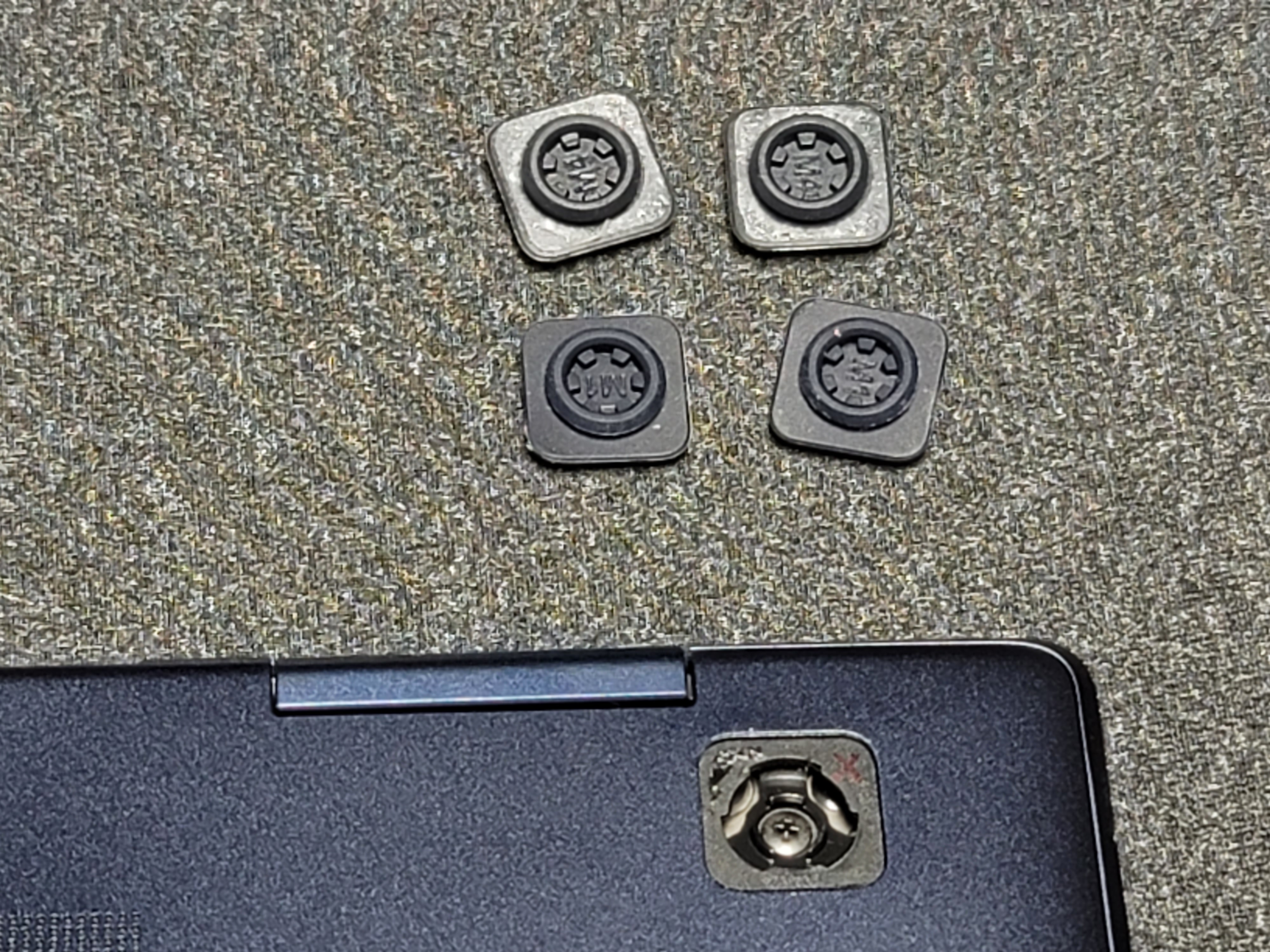 분리한 받침고무. 숨어 있던 나사도 보인다.